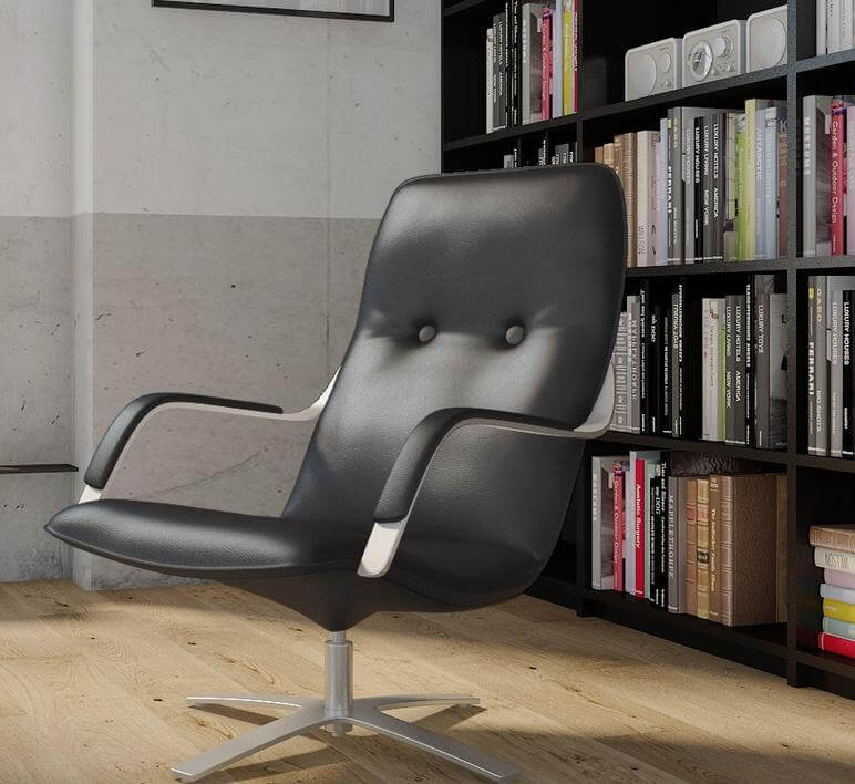 Elegant og stilfuld 3-13 lænestol fra det kvalitetsbevidste Berg Furniture. Drejestolens armlæn og sokkel er fremstillet i aluminium og sammen med det sorte læder fremstår stolen elegant og eksklusiv. Desuden er stolen fremstillet med fokus på at give den helt rette støtte til ryggen og skabe en fantastisk siddekomfort. Placér den klassiske og tidsløse lænestol i stuen og mærk den behagelige stemning der følger med stolens udstråling.