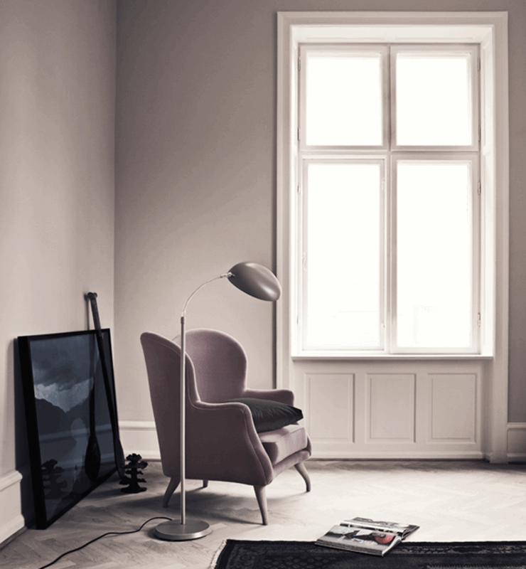 Cobra blev første gang produceret i 1940’erne af Greta Grossman. Lampen er et stykke kunst der i 1950 kom på udstilling på Museum of Moder Art og vandt Good Design Adward. Den kom i produktion efter krigen og er stadig den dag i dag er lige så moderne som dengang. Denne enkle standerlampe er velegnet som læselampe og dens fleksible arm kan bøjes i alle retninger. Standerlampen findes i 5 forskellige farver.