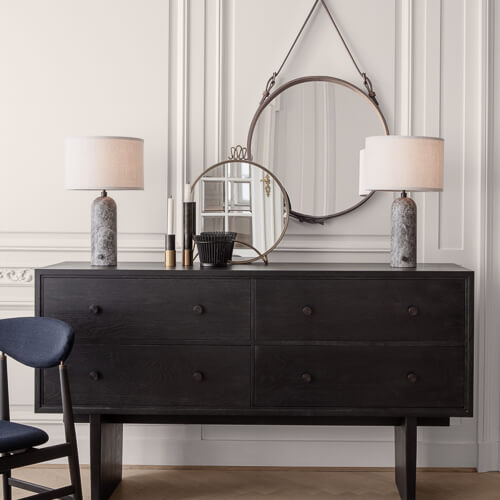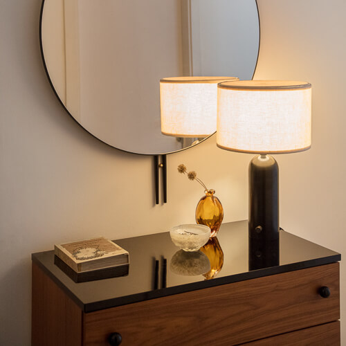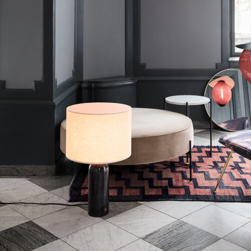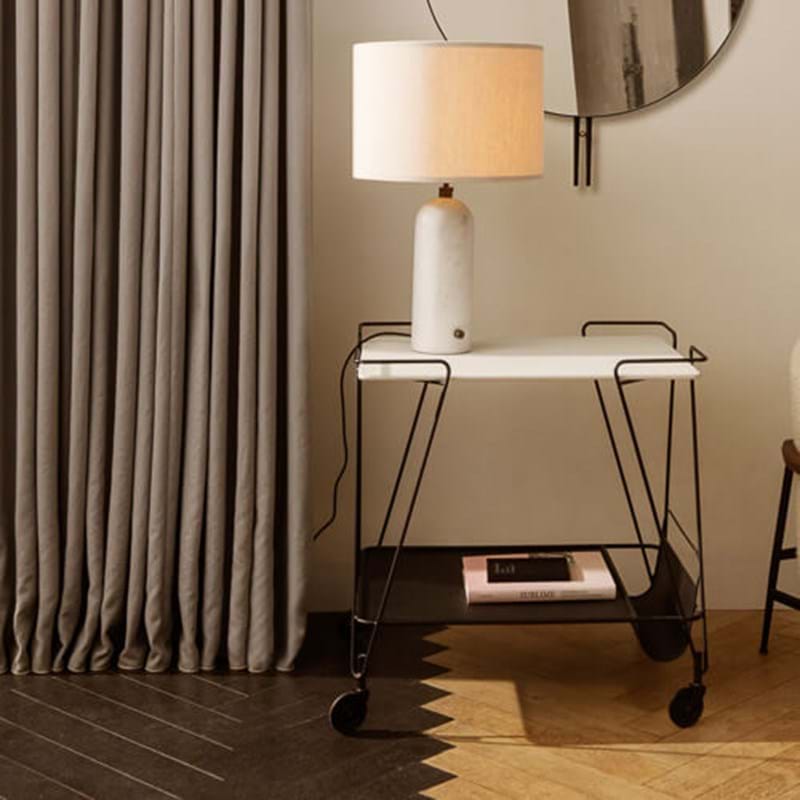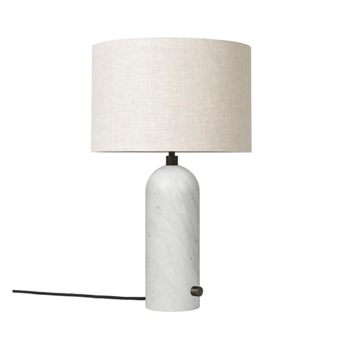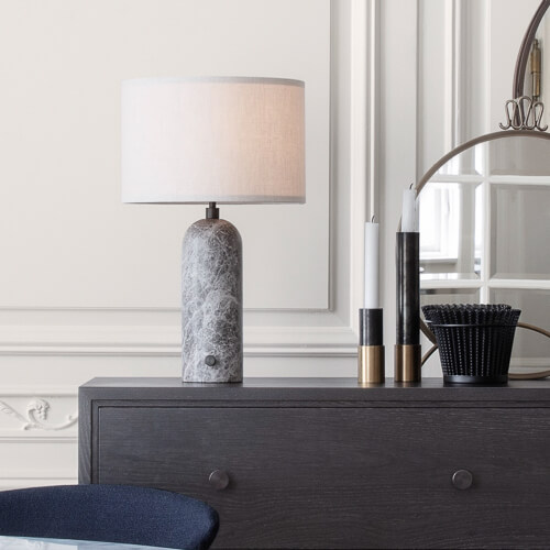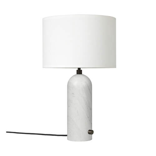 Vil du have loungestemning, klassisk look og kvalitet, så er Gravity bordlampen et godt bud. Designet for danske Gubi af det dygtige Space Copenhagen team. Perfekt balance mellem materialerne: marmor og stof. Netop fordi marmor er et naturmateriale, så kan udtrykket stifte fra lampe til lampe, men netop det gør den også unik. Placer den på skænken, hjørnebordet, som natbordslampe (hotel følelse) eller hvor du nu synes den fungerer bedst. Klassisk og smuk.