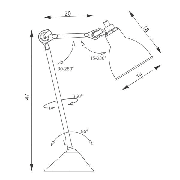DCW Edition - Lampe Gras NO.250 bordlampe i en flot matt finish. Virkelig en smuk og klassiske designet bordlampe. Oprindeligt blev lampen designet til kontorer. Den er utroligt stabil med sin unikke trekantede base, der er lavet af støbt stål. Det er en elegant, velafbalanceret, og unik bordlampe.