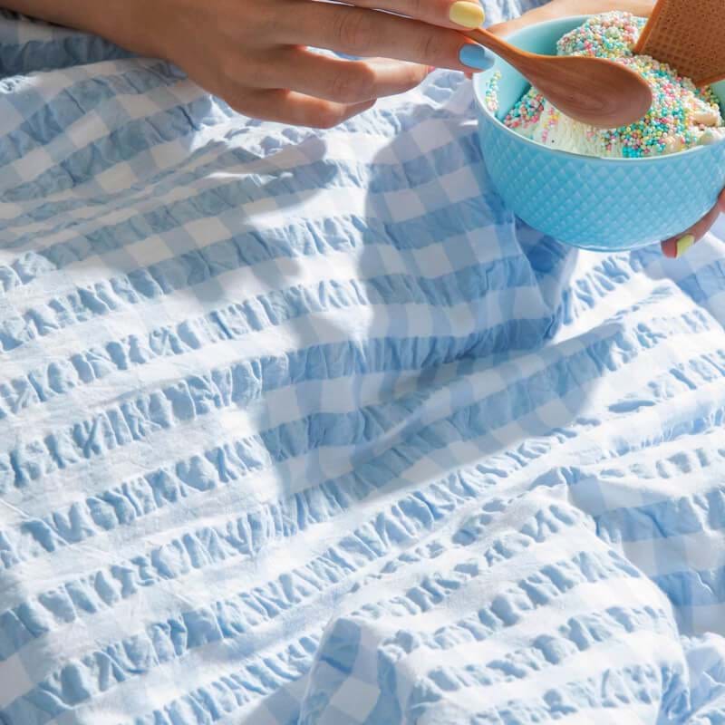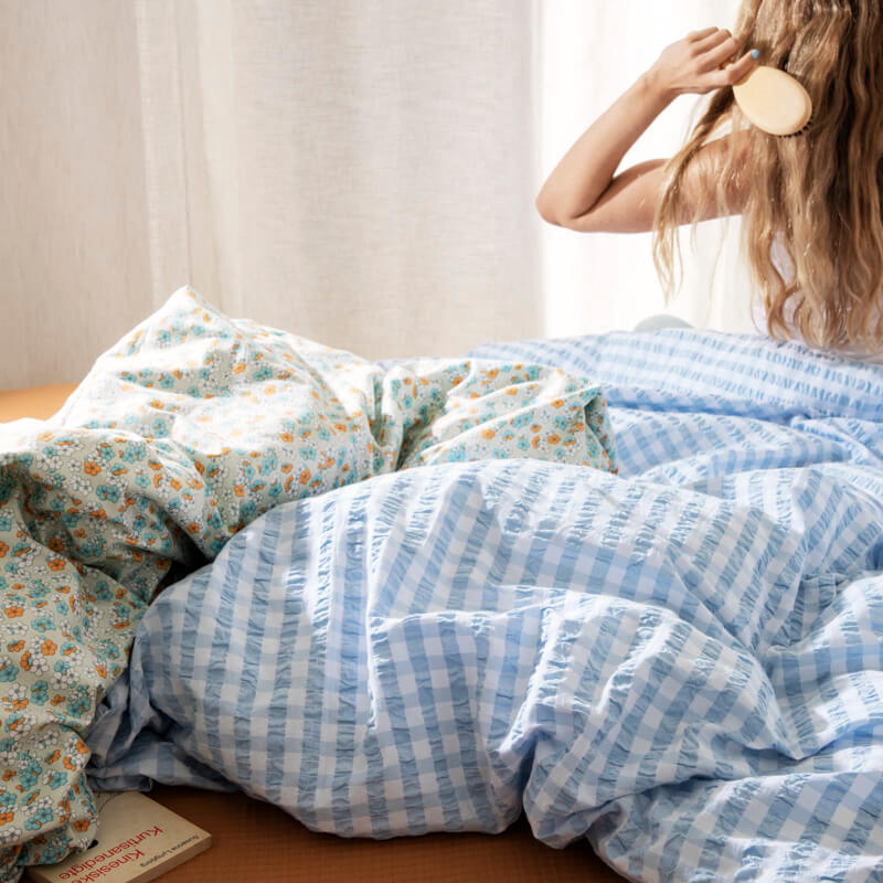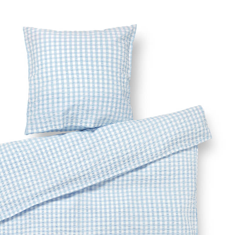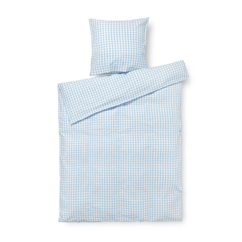 Bæk & Bølge sengetøjet, designet af JUNA, er for mange lig med en god nats søvn i det blødeste sengetøj. Bæk & Bølge-serien er lavet i 100% økologisk bomuld. Dynebetrækket lukkes med knapper, mens pudebetrækkene har kuvertlukning. Sengetøjet i den fine farvekombination lys blå/hvid er OEKO-TEX®-mærket og kan vaskes ved 60°.