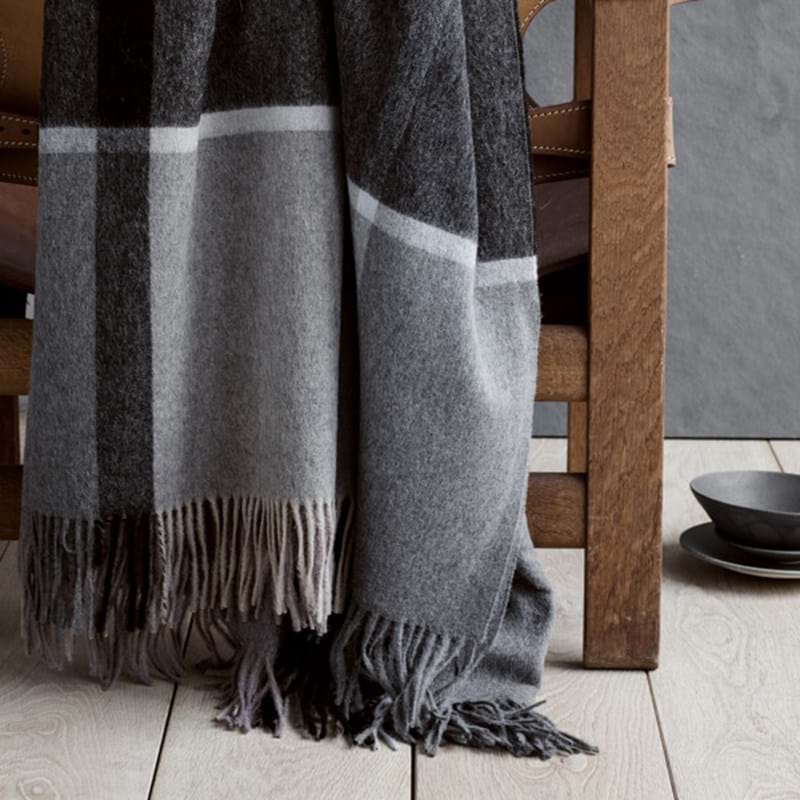 Den bløde og lækre plaid fra Elvang er inspireret af New York Manhattans kvadratiske boligblokke og bydelens lige gader. En klassiker med et moderne tvist.