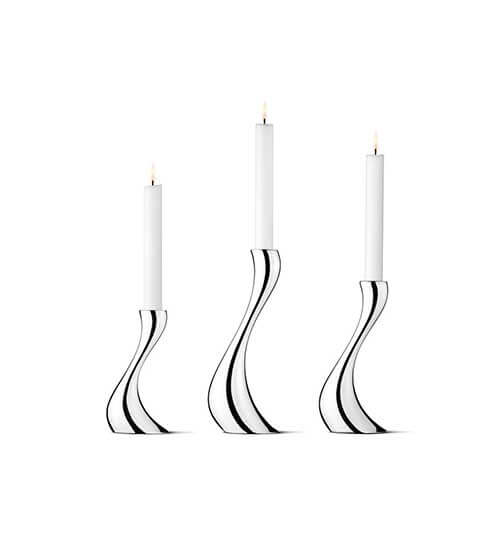 COBRA Lysestager er et design fra Georg Jensen. Disse lækre stager er til dig, der gerne vil pynte hjemmet op med stil. Stagerne her findes som gulvstager og almindelige bordstager. De kan stå alene eller sammen i en klynge, hvor de kan få lov til at reflektere lyset i deres betagende kurver. Stagerne er tegnet af Constantine Wortmann, som er uddannet designer i München.