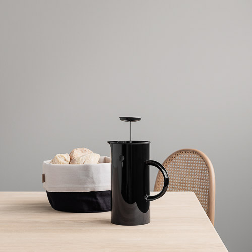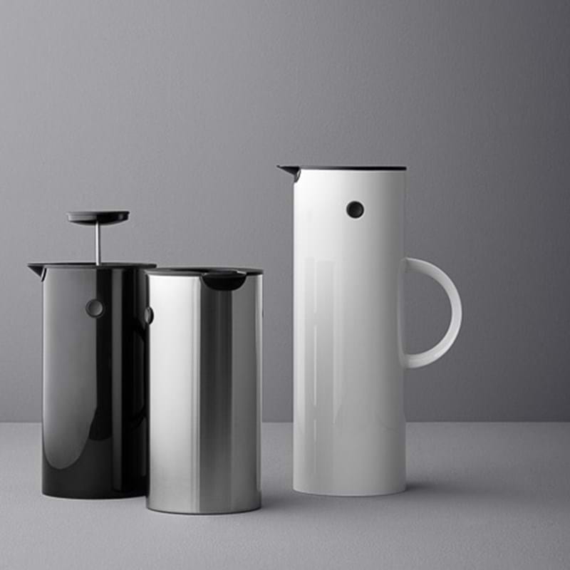 EM77 stempelkanden fra Stelton er designet af Erik Magnussen. Den klassiske kande er produceret af ABS plast, PP plast samt rustfrit stål. Dens dobbelte vægge sørger for at holde kaffen varm i længere tid. Kanden har et enkelt og moderne udtryk.