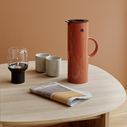 EM77 termokanden fra Stelton er designet af Erik Magnussen. Den er produceret i Danmark. Kanden bidrager med et stilrent og enkelt udtryk til ethvert køkken. Kandens fremragende isolerende glasindsats sikrer, at indholdet bevarer varmen eller kulden i timevis.