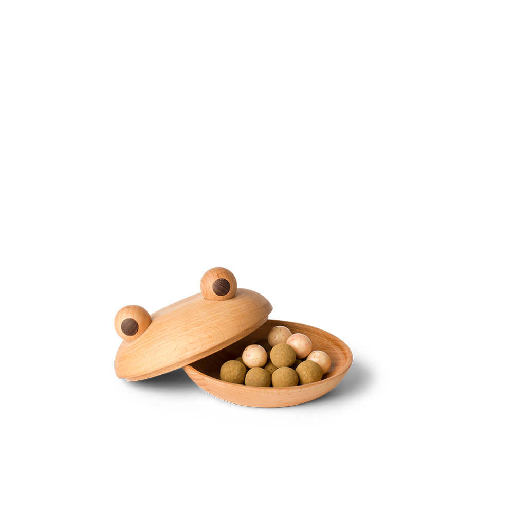 Denne unikke og finurlige skål fra Spring Copenhagen er fremstillet af bøgetræ, hvilket sammen med dens frølignende udseende, giver den et unikt, naturligt og personligt udtryk. Brug den eventuelt til små lækkerier eller frugt, hvis du ønsker at give dine gæster et smil på læben, mens de spiser.
