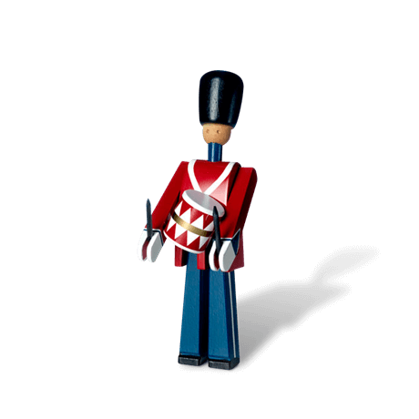 Gardere blev designet af Kay Bojesen tilbage i 1940’erne. Inspirationen til dem fik han af Amalienborgs soldater. Garderne er håndmalet og bør tørres af med en tør klud. Fanebæreren er helt perfekt til fødselsdage, om det er børn eller voksne, der skal fejres. I denne serie er der 3 gardere. Den ene bærer et gevær, den anden bærer en tromme og den tredje bærer en fane. Garderne er helt perfekt som gave til barnedåben, til fødselsdage eller som bryllupsgave. De kan stå i alle hjem og kan ser både flotte ud alene og sammen på række med fanebæreren først.