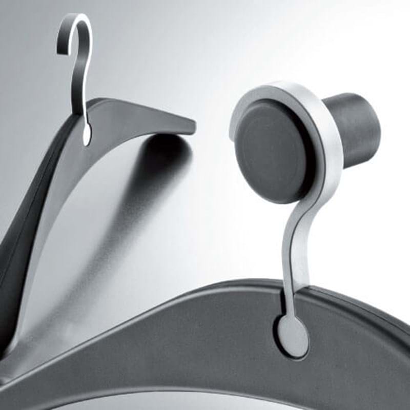 Denne bøjle er et design fra LoCa. Med Hanx bøjlen i garderoben, bliver gæsterne budt velkommen på en elegant måde. Den er støbt i en form der giver bøjlen de elegante kurver. Den er bredere på skulderstykket og smal på midten, dette gør at man slipper for unødvendige buler på tøjet og bevarer tøjets struktur. Dette gør også at den er perfekt til brug af habitjakker, da den giver den mest optimale støtte.