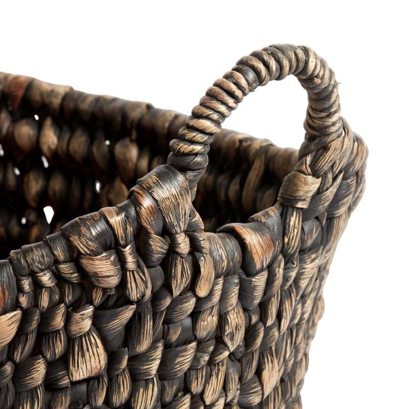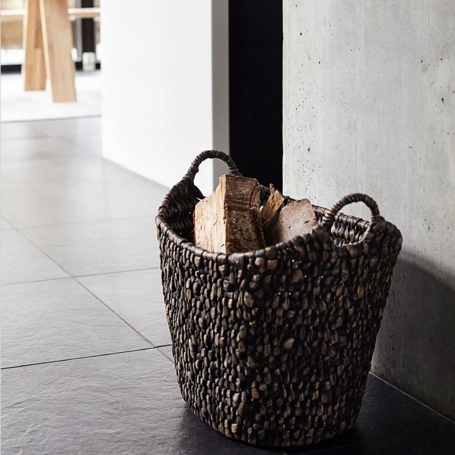 Flettet kurv i vandhyacint fra MUUBS med håndtag. Kurven er praktisk, da den har håndtag. Meget anvendelig i alle rum, f.eks. badeværelset til håndklæder, børneværelset til legesager, stuen til magasiner/aviser, opbevaring af tæpper og hvad du eller finder på at bruge den smukke kurv til.