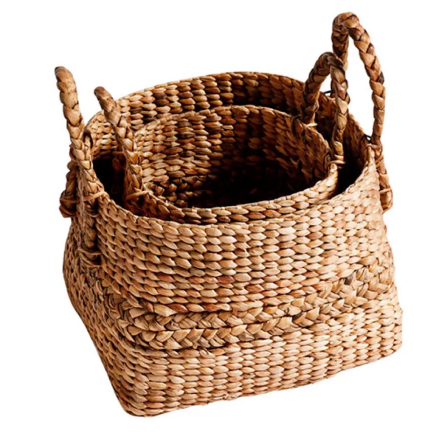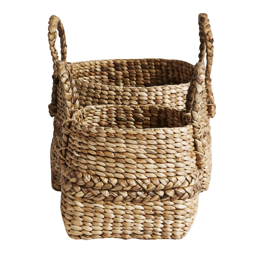 Flettet kurv i vandhyacint fra MUUBS med håndtag. Kurven er praktisk, da den har håndtag. Meget anvendelig i alle rum, f.eks. badeværelset til håndklæder, børneværelset til legesager, stuen til magasiner/aviser, opbevaring af tæpper og hvad du eller finder på at bruge den smukke kurv til.