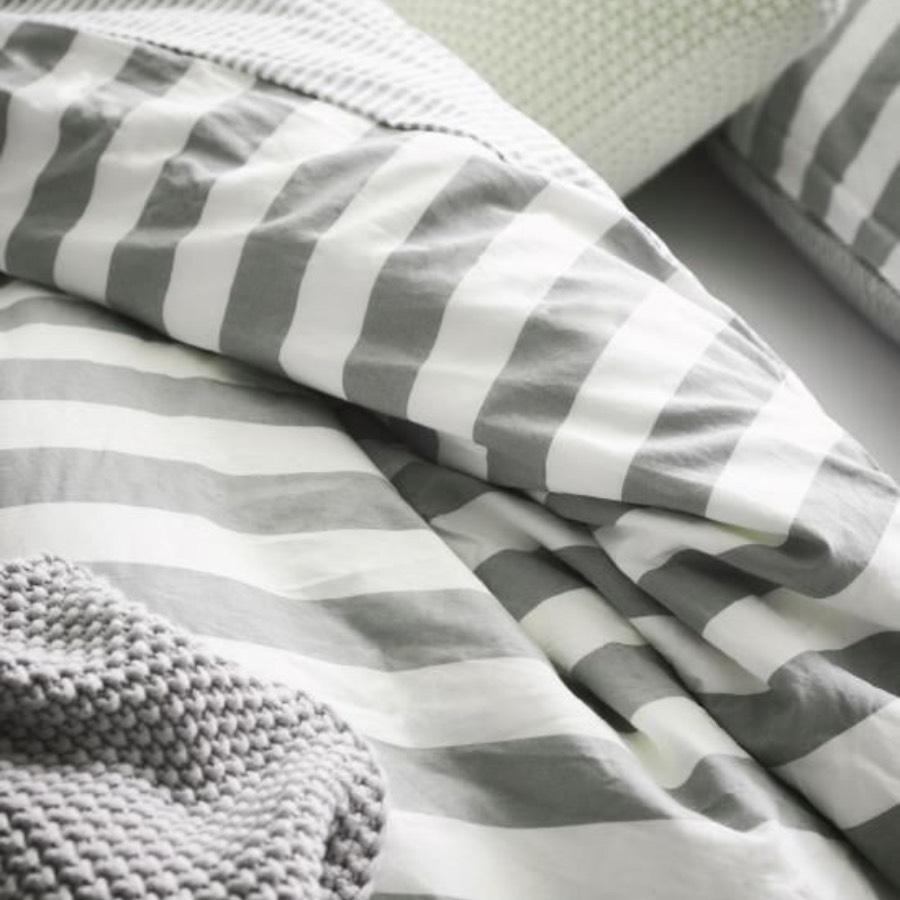 Sengesættet har en bred stribe på den ene side og en smal på den anden.