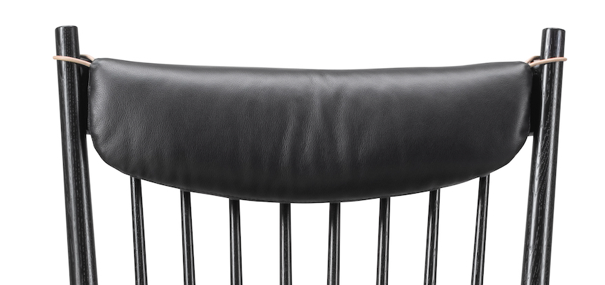 Den simple nakkehynde er tilpasset den klassiske J16 gyngestol, som er designet af Hans J. Wegner. Nakkehynden er fremstillet af luksuriøst, sort læder og er designet med en lædersnøre i hver side, som gør det nemt at fastgøre den til gyngestolen.