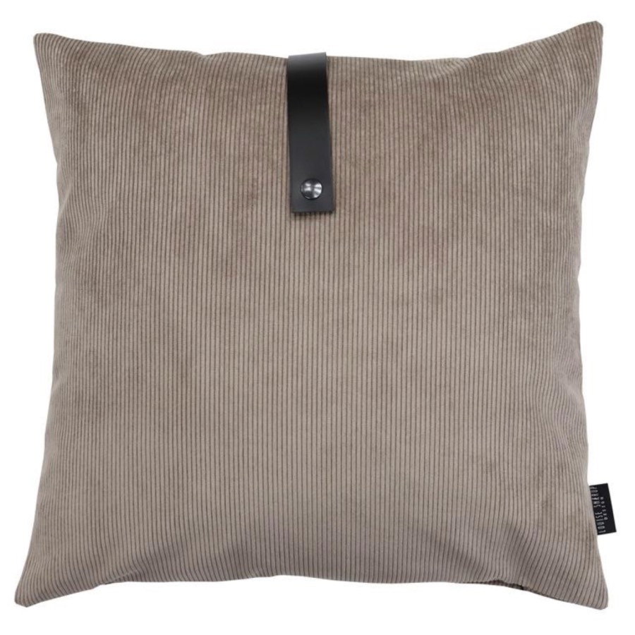 Puden er syet i et cool army fløjlstekstil af høj kvalitet. På puden er der en fin aftagelig rem af sort kernelæder, en flot detalje, der udgør en superfed kontrast til møbelstoffet, og som kendetegner Louise Smærups forskellige designs.