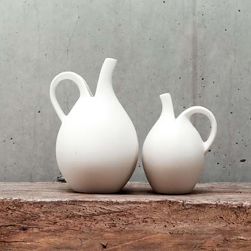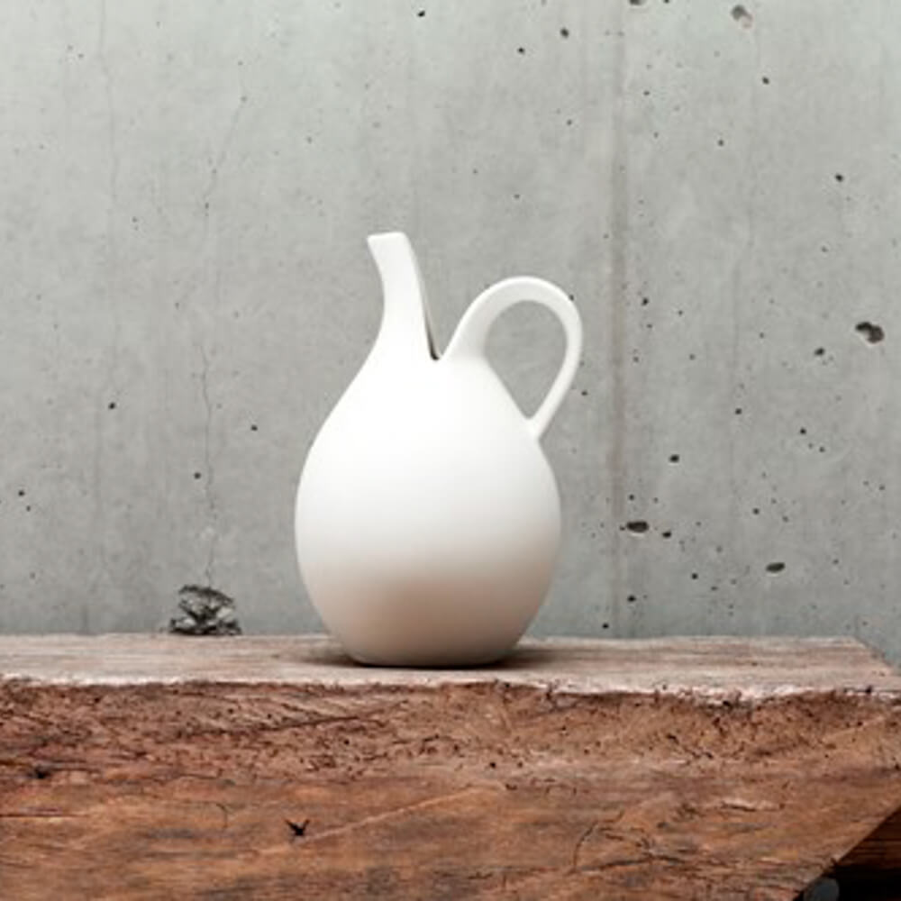 Spaltekanden er lavet i stentøj med æggehvid glasur, og er designet af Eva Stæhr-Nielsen. Denne kande er den lille model, som passer fint sammen med den store udgave. Spaltekanden er unik, enkel og flot og kan både bruges som kande og vase.