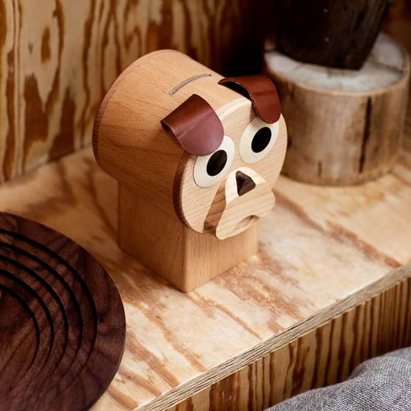 Tinder dog er en sparegris i egetræ designet af Jesper Wolff. Sparegrisen er inspireret af eventyret "Fyrtøjet", hvor tre store hunde passer på kisterne med penge. Tinder dog passer både til voksne og børn er en oplagt dåbsgave.