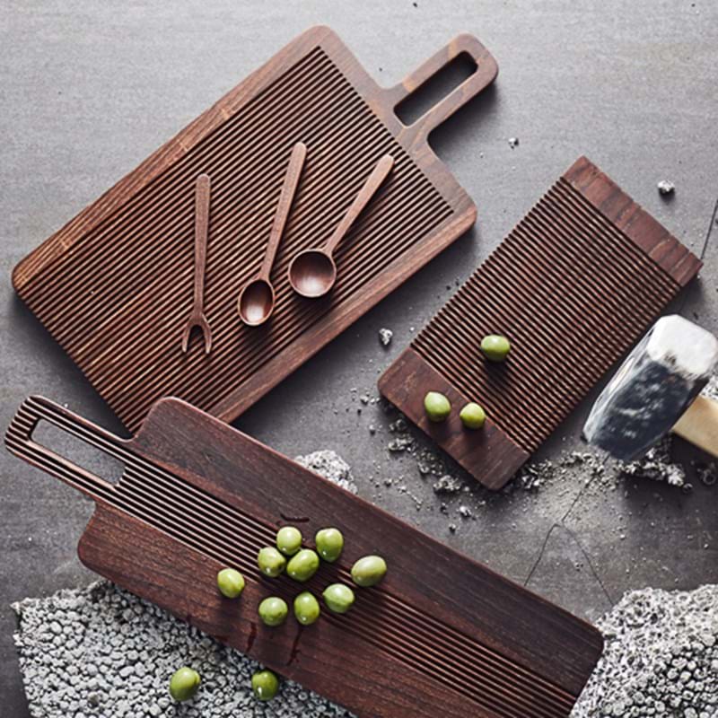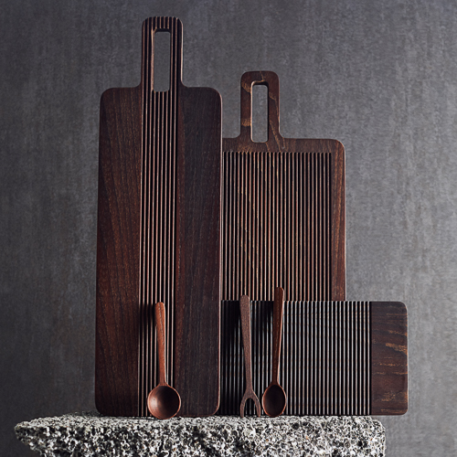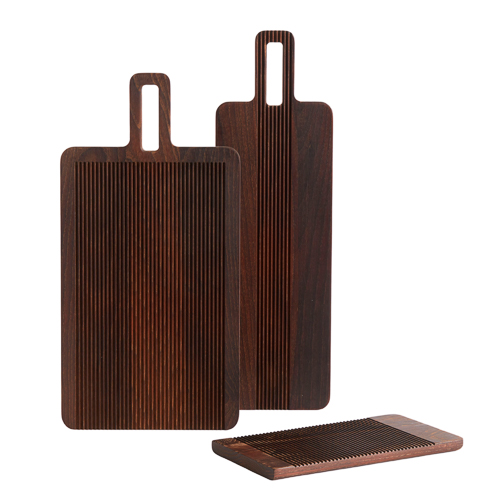 Dette skærebræt fra Muubs er inspireret af japansk design og mørke nuancer. Det gør sig godt som skærebræt eller tapas-bræt til at servere på. Det mørke træ passer godt ind i de fleste køkkener. Derudover, kan det hænges op eller sættes på sin flade side. Brættet kan behandles med madolie, så det beholder sin glød og varme.