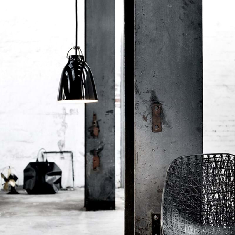 Denne Caravaggio pendel er designet af Cecilie Manz for Lightyears, nu Fritz Hansen lighting. Den udkom for første gang i 2005 og pendlen er sidenhen blevet et stykke dansk design. Den elegante Caravaggio pendel, kan grundet sit simple, men klassiske udseende bruges i alle rum og af alle. Denne pendel findes i flere størrelser, i både en blank og en mat udgave. Da lampeskærmen er klokkeformet udsender den et behageligt nedadrettet lys. Desuden bliver selve ledningen oplyst af et hul foroven i pendlen. Dit lys bliver dermed ikke lukket inden i metalskærmen, men strømmer ud både forneden og foroven.