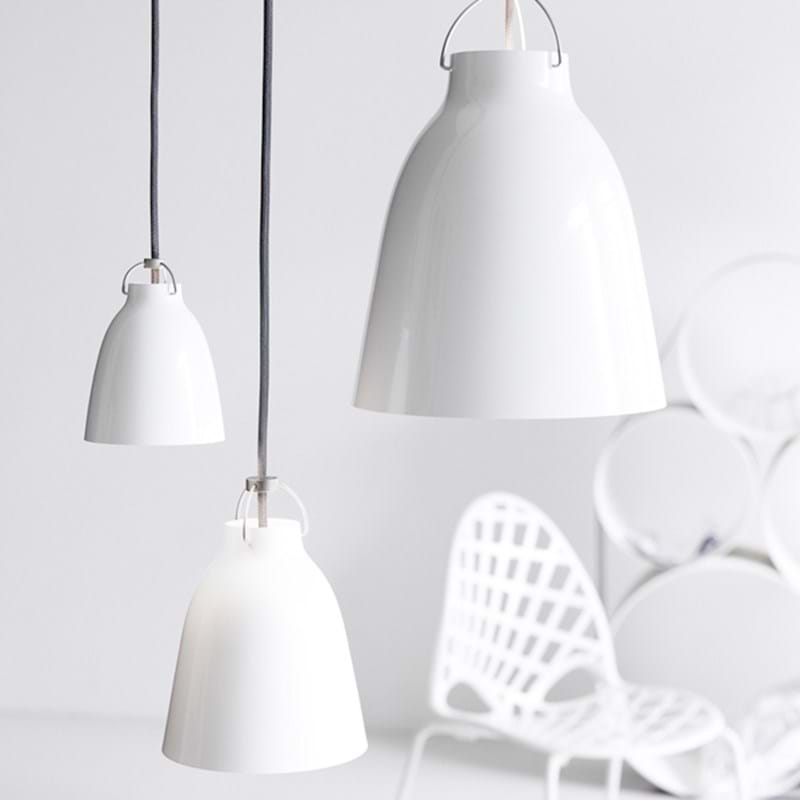 Denne Caravaggio pendel er designet af Cecilie Manz for Lightyears, nu Fritz Hansen lighting. Den udkom for første gang i 2005 og pendlen er sidenhen blevet et stykke dansk design. Den elegante Caravaggio pendel, kan grundet sit simple, men klassiske udseende bruges i alle rum og af alle. Denne pendel findes i flere størrelser, i både en blank og en mat udgave. Da lampeskærmen er klokkeformet udsender den et behageligt nedadrettet lys. Desuden bliver selve ledningen oplyst af et hul foroven i pendlen. Dit lys bliver dermed ikke lukket inden i metalskærmen, men strømmer ud både forneden og foroven.