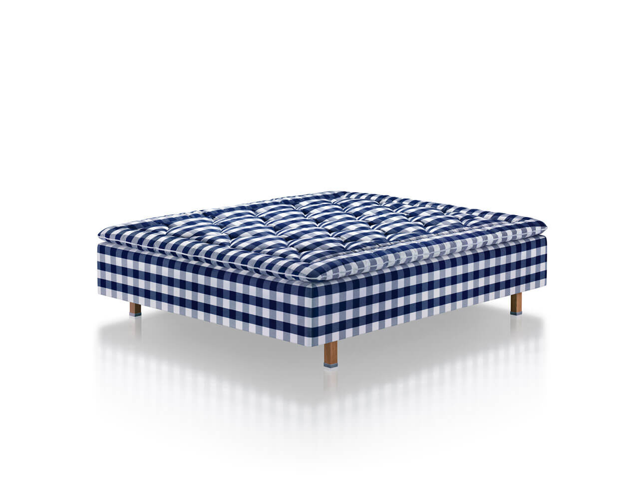 Både madrassen og topmadrassen er udsmykket med de flotte og velkendte blå tern, som er karakteristisk for Hästens senge.