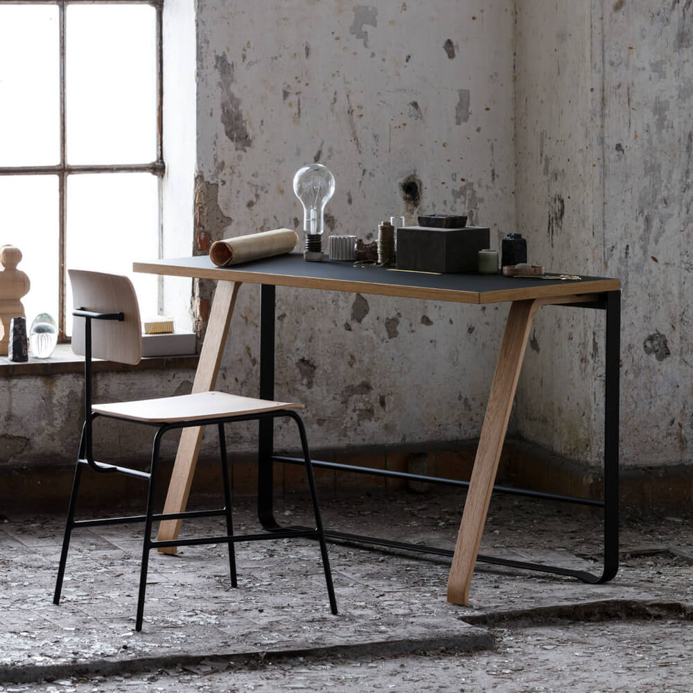 Arbejder du også til tider hjemmefra? Og det ser ud til at tendensen fortsætter; vi får en dag eller to med hjemmearbejde. Dit bord skal dække dit behov men bestemt også se godt ud og præsentere sig godt i stuen, køkkenet eller hvor du nu har dit mini kontor. Det skønne ved bordet er også at det kan stå fritstående, simpelthen bare fordi det er så smukt og enkelt. For resten den fedeste feature er at der er indbygget trådløs QI oplader til din smartphone. Telefonen oplades uden ledning – wow.