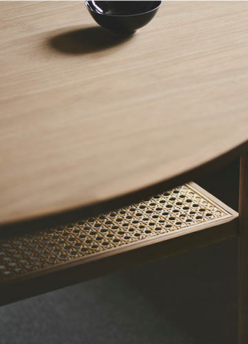 Træ og fransk rørflet forenes på smukkeste vis.Der ligger så megen lidenskab, håndværk og god kvalitet i bordet. På den ene side er det enkelt og på den anden side, så er detaljerigdommen så stor, at du ikke får nok af at kigge på det. Klassikeren er født i 60erne og til bordet følger en smuk familie historie , hvor barnebarnet genoptager morfarens livsværk. Bordet er og forbliver en smuk klassiker.