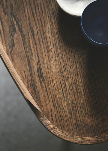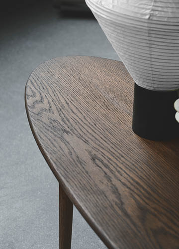 Designet i 1960erne. Bordpladen er udformet i førsteklasses egetræsfinér, hvilket tilføjer bordet et tidløst udtryk. Det smukke sofabord er med kombinationen af organiske former og skarpe, lige linjer et elegant og minimalistisk møbel.