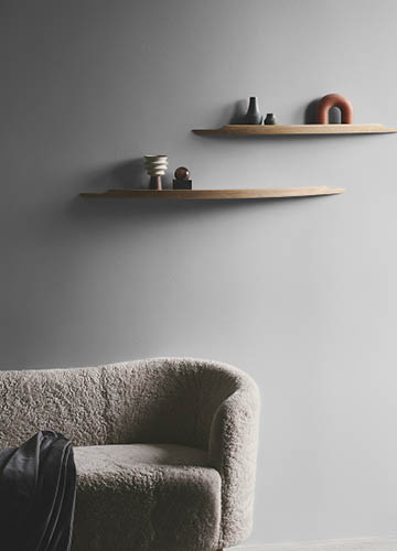 Organiske hylder der nærmest "vokser ud af væggen" og ligner en del af arkitekturen. Smukt og let.