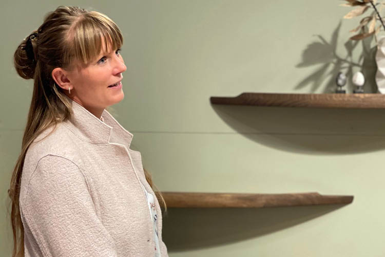 Vi møder Nanna på en messe, hvor hun præsenterer hendes hylde design. Formsproget, kvaliteten og stilen er helt i tråd med den smukke designarv hun repræsenterer.