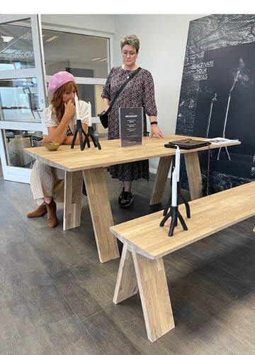 Imponerende! På dette bord, strøs sand på aluminium mens det er varmt - det er unikt, det er kompromisløst og det er gennemtænkt. Og DU får et bord der er helt sin egen, ligesom du.