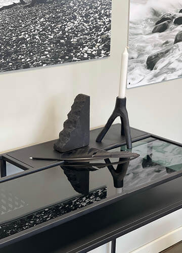 Vi gruber! Ikke over om vi kan li´ det vi ser, for det KAN VI!. Men ideerne står på spring. F.eks er bænken super, til at placere foran store vinduespartier, som en form for vinduesbænk og de "legende" lysestager er skulpturelle alene eller i grupper.
