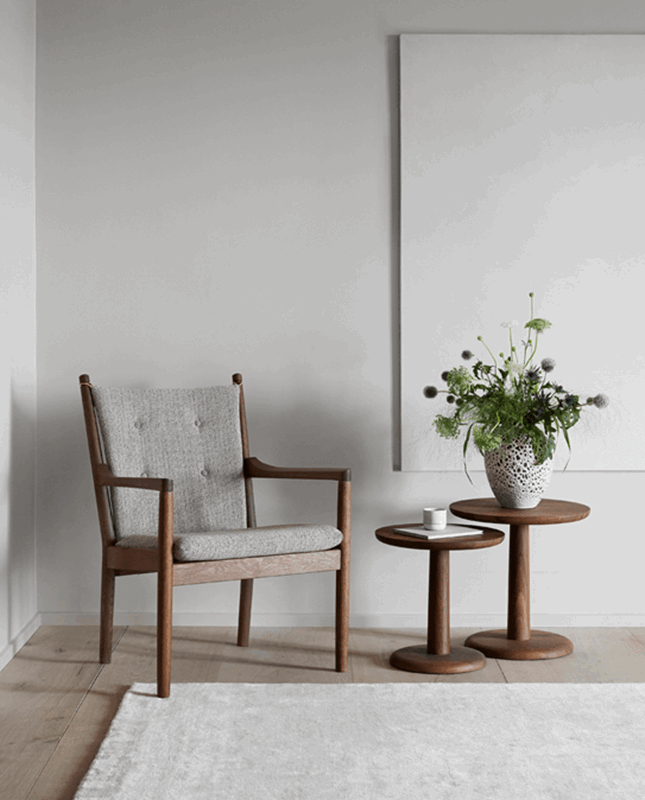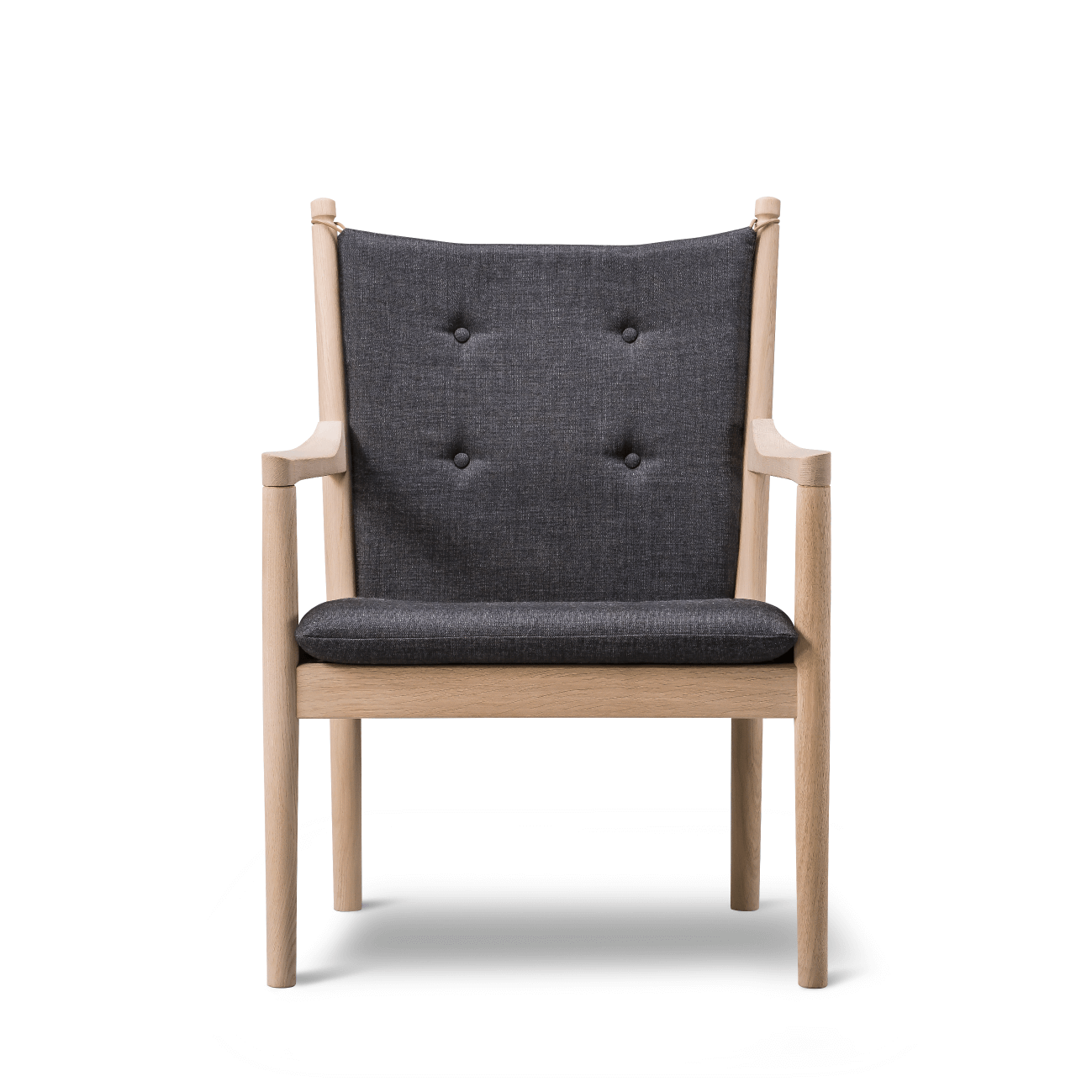 Lænestolen fra Fredericia Furniture er designet af Hans J. Wegner. Lænestolen er yderst komfortabel og er især ideel til stuen eller hyggekrogen. Lænestolen er udført i et gennemført design og er lavet af massivt træ og udskiftelige puder. Træet kan rengøres med en hårdt opvredet, blød klud mens læderet kan aftørres med en blød, tør klud.