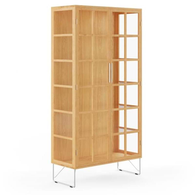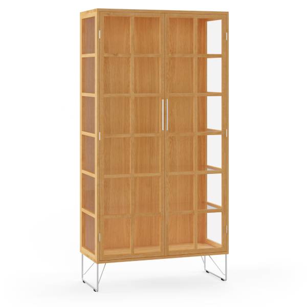 Hey, og så er der glas i siderne også, det gør skabet let/åbent og at dine ting i skabet også ses fra siden. Dette vitrineskab er bestående af 5 flytbare glashylder så hyldernes afstanden kan tilpasses efter behov.