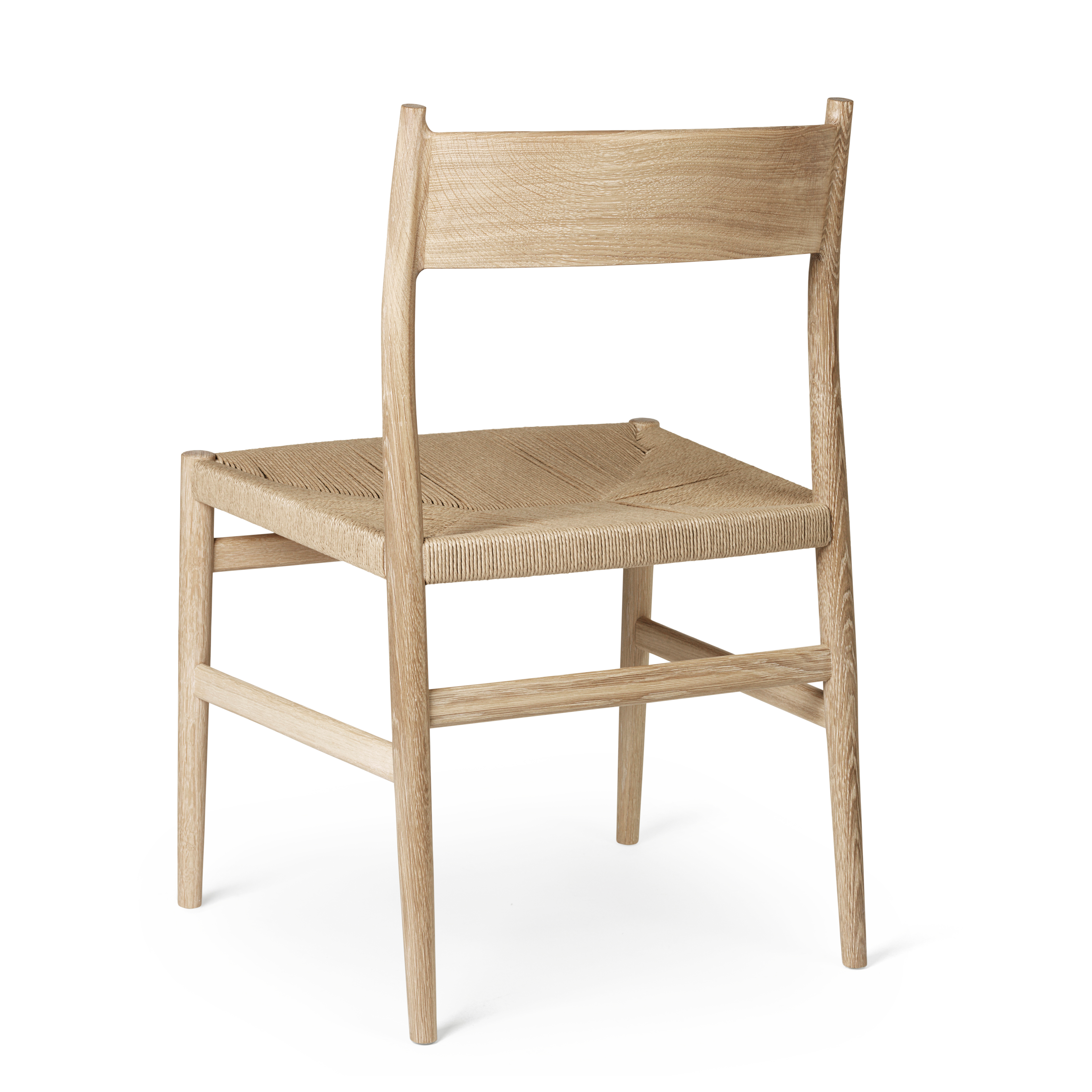 Denne stol har et sæde i flet og ryglæn i massiv egetræ.