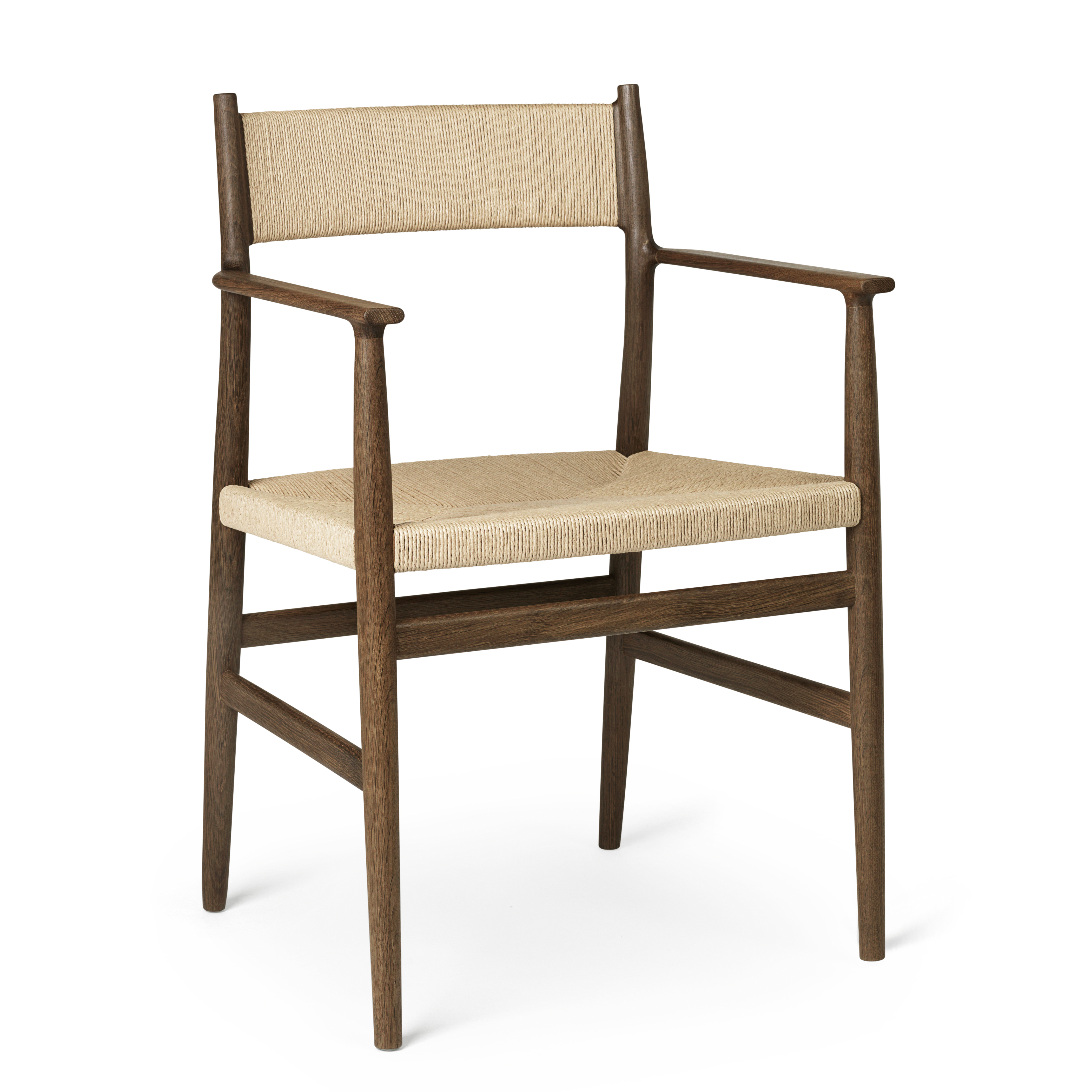 Arv stol, røget eg, m. armlæn, flet