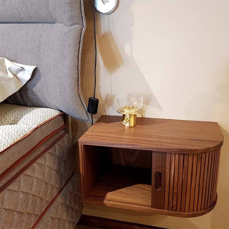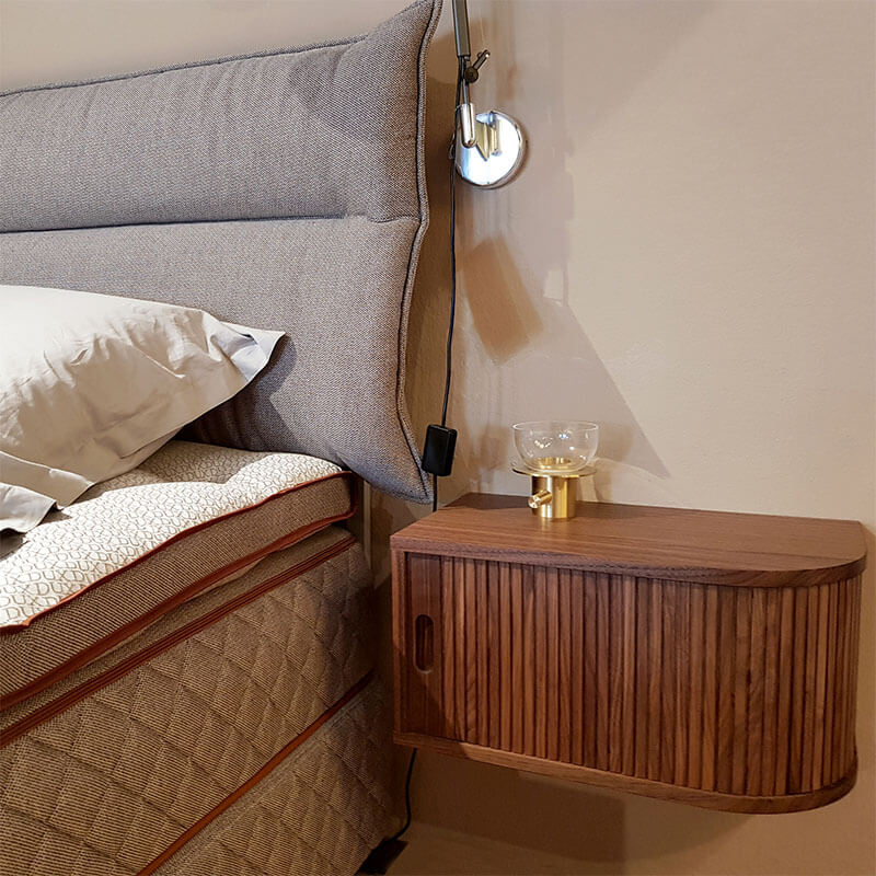 Dette svævende natbord fremstillet i solidt træ minimere brugen af plads i rummet, hvilket gør den let og elegant at se på. Natbordet passer ind i ethvert hjem, og vil pryde med funktionaliteten og designet.