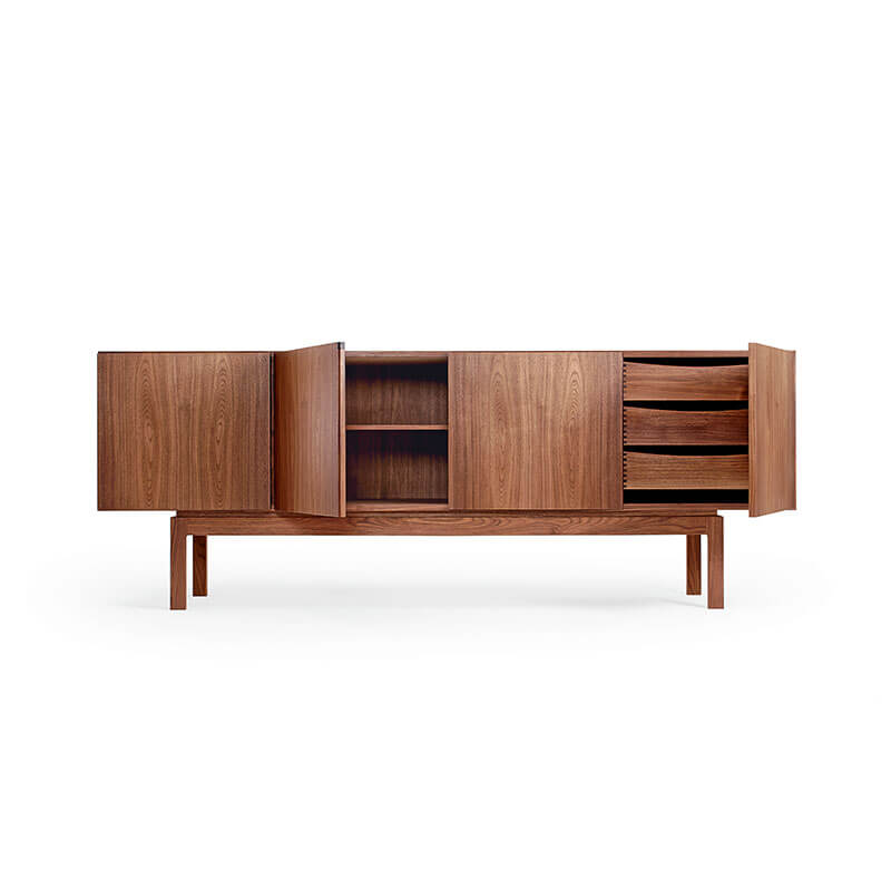 Denne fabelagtige skænk er designet med tankerne på dansk design. Med sine rene linjer, funktionalitet samt design lever møblet op til dette. Skænken har justerbare hylder således at den kan passe til hjemmets behov.