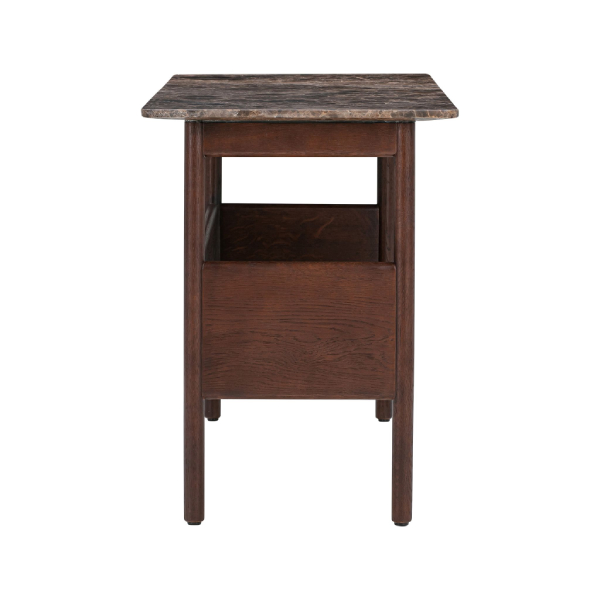 Collect serien fra Wendelbo er designet af berømte Jonas Wagell. Det klassiske design skaber et yderst stilrent udseende. Dette sørger for, at det smukke bord bidrager med elegance til ethvert moderne hjem. Bordets karakteristiske kanter tilbyder en hylde med plads til udstilling samt dekorative genstande. Bordets top er produceret af brunt Emperador marmor. Basen er produceret af mørkebrun FSC-certificeret massiv eg samt egefiner.