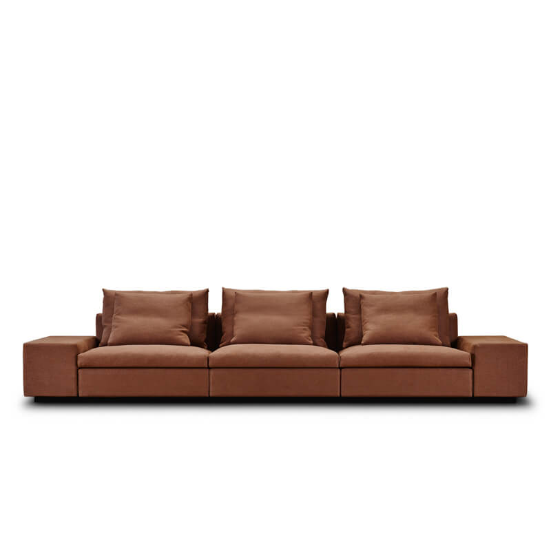 Rene linjer og et ægte lounge-design er essensen i Dacapo sofaen. Sofaen kan designes i mange udgaver med de forskellige moduler og armlæn i 3 bredder. Sædehynderne har en dun-top og en dun omsluttet skumkerne til at give en fjedrende komfort. Sektionerne kan skilles ad ved at trække i en rem i sædet uden brug af værktøj og uden at trække stof-betrækket af. Dette gør rengøringen nemt og overskueligt.