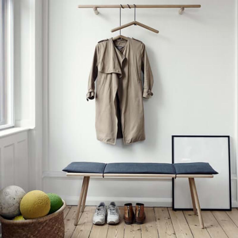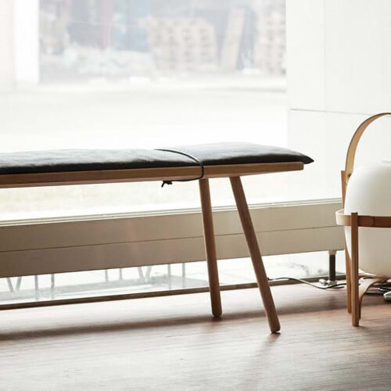 Georg bænken udbyder et fantastiske møde mellem den japanske minimalisme og nordiske sensualitet. Bænken består af de slanke ben med afrundede kanter, som er fremstillet i egetræ. En flettet læderrem holder på den bløde uldpude, der udgør komfort i bænken. Den flotte bænk vil være et perfekt møbel til entréen og garderoben, hvor du har brug for et sted at sidde, når der skal sko og støvler på, eller måske ved spisebordet som en dejlig siddeplads rundt om samlingsstedet.