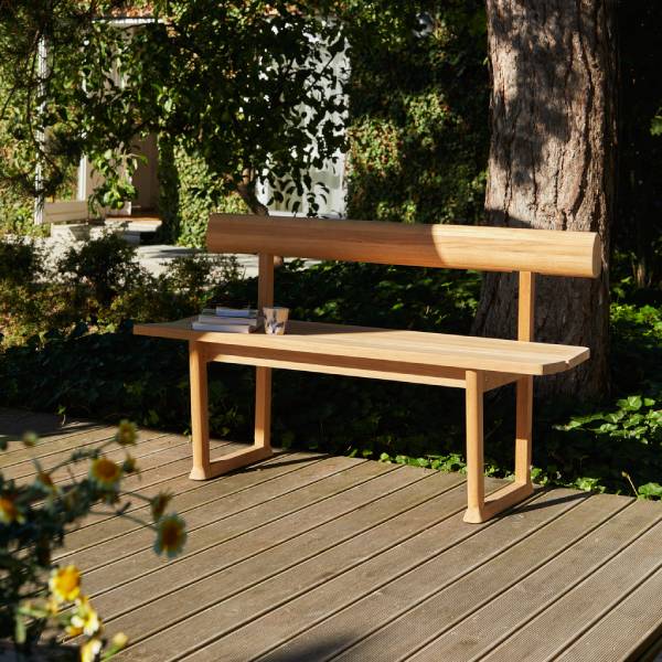 Ryglænet er ikke bare udtryksfuldt, mens også funktionelt og perfekt formet til ryggens kontur. Vælger du den dobbeltvendte bænk gør ryglænet det også muligt for folk at sidde i begge retninger.