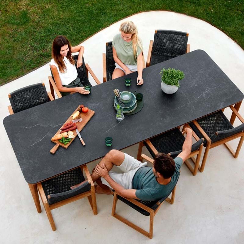 Aspect er et bord i absolut særklasse, i holdbare og elegante materialer. Aspect kombinerer glød og varme fra teaktræet, med stilrent og solidt keramik. Aspect er skabt med en ramme i teak, en kerne i solidt aluminium og bordplade i stilrent keramik. Cane-line teak er godkendt og dyrket i henhold til SVLK certificeringssystem. Mixet mellem træ og keramik giver et eksklusivt og raffineret udtryk, som kan sætte rammen om en fantastisk udendørs spiseplads.