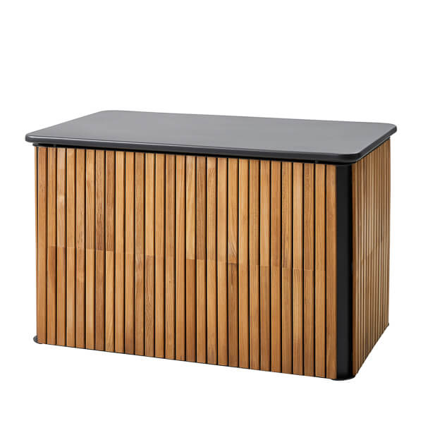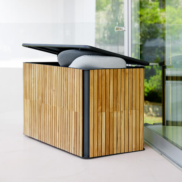 Her ses den lille hyndeboks fra Combine-serien. Combine-serien klassificeres ved, som navnet også hentyder til, at blande materialer på en ny og kreativ måde. Combine plantekasserne har et super moderne look med den flotte blanding af teaktræ og aluminium der giver et minimalistisk og meget stilet udtryk. Combine-serien passer perfekt ind i den moderne husstand og er en fed måde at sætte et ekstra design præg på jeres udendørsareal.