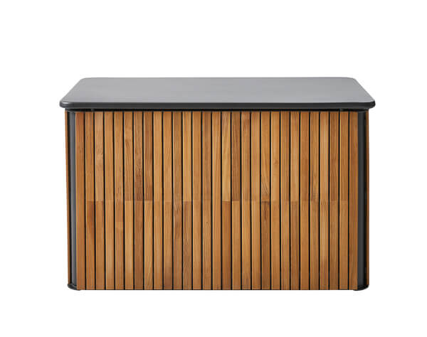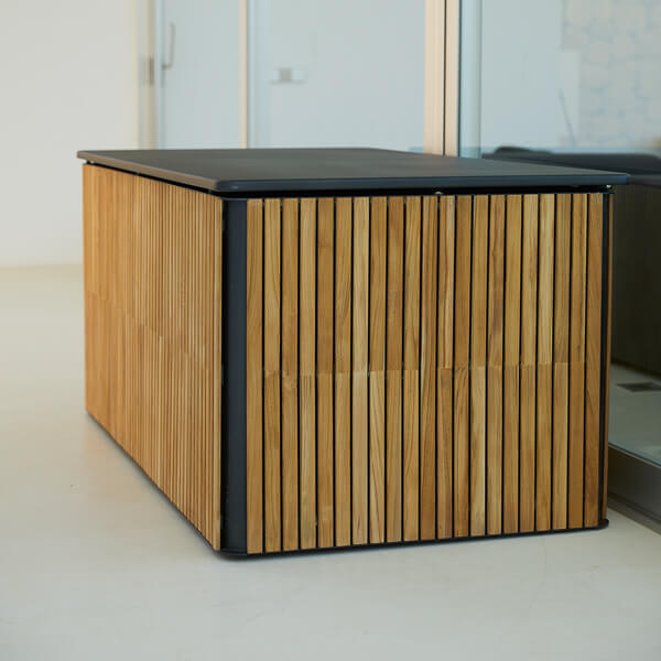 Her ses den store hyndeboks fra Combine-serien. Combine-serien klassificeres ved, som navnet også hentyder til, at blande materialer på en ny og kreativ måde. Combine plantekasserne har et super moderne look med den flotte blanding af teaktræ og aluminium der giver et minimalistisk og meget stilet udtryk. Combine-serien passer perfekt ind i den moderne husstand og er en fed måde at sætte et ekstra design præg på jeres udendørsareal.
