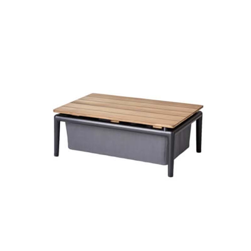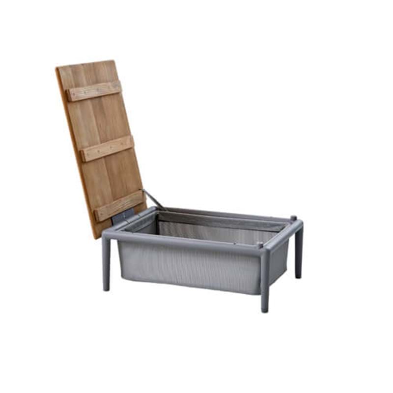 ”Den perfekte balance mellem praktikalitet og design findes ikke… ”. Jo den gør. Box bordet fra Conic-serien fremstillet af Cane-line formår at balancere design og praktikalitet som det næppe er formået før. Bordets stel er fremstillet af holdbart aluminium og pladen af flot teaktræ, men indenunder gemmer der sig en opbevarings kasse der kan tilgås ved at vippe bordpladen på højkant. Pladsen kan med fordel bruges til at gemme hynder, puder eller måske endda en fryse Box til de varme sommerdage. Det, parret med at bordet har et utrolig moderne og minimalistisk udtryk gør Box bordet fra Conic populært blandt mange.