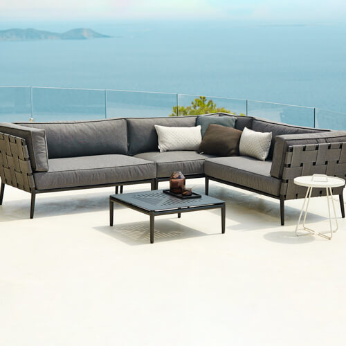 En skøn sofa til haven fra Cane-line. Den lækre Conic serie har et elegant og minimalistisk design der passer perfekt til den nordiske stil.