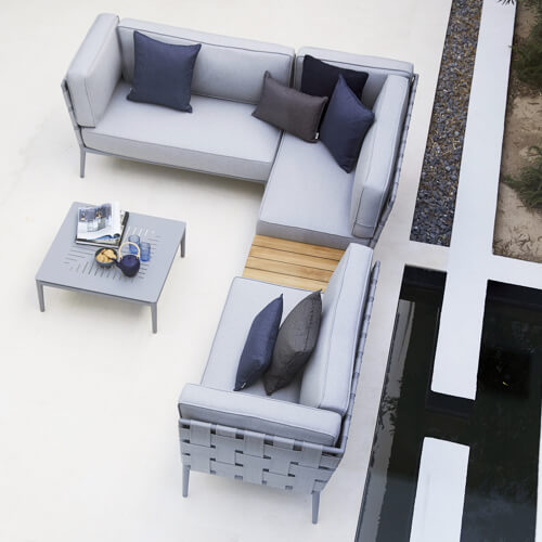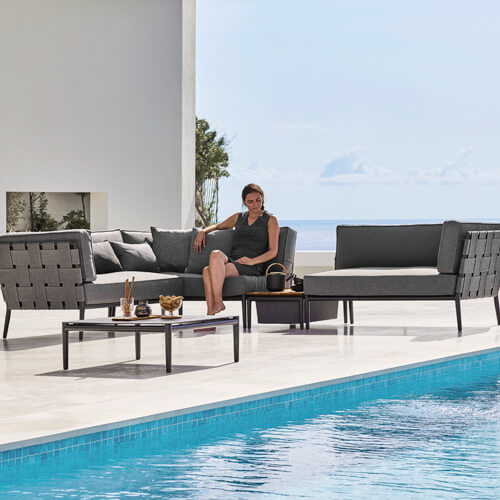 En skøn sofa til haven fra Cane-line. Den lækre Conic serie har et elegant og minimalistisk design der passer perfekt til den nordiske stil.