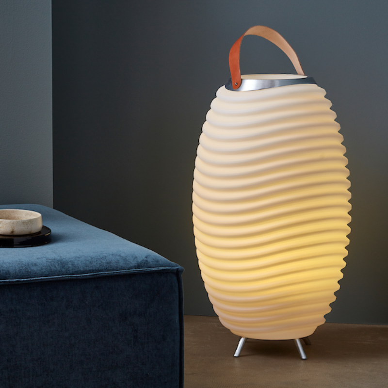 Et fantastisk design hvis du elsker fleksibilitet. For nu kan du tage på tur og lade natten sænke sig, for du har både lys i lampen, en Bluetooth højttaler og vinkøler i et og samme produkt.