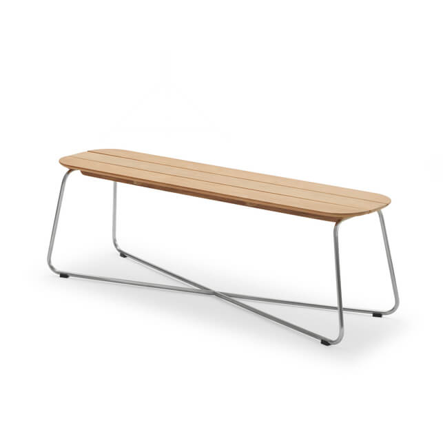 Denne fine bænk er designet af BIG (Bjarke Ingels Group) i 2020, og tilhører Lilium-serien. Lilium er en enkel møbelserie, der er let og robust på samme tid. Den er let med sin slanke X-formede ramme i rustfrit stål, robust med sin lamellestruktur, der giver en moderne og indbydende udtryk. Lilium bænken har et klassisk og enkelt look, og udover dens funktionen som en alsidig bænk, kan den også fungere som loungebord, hvilket giver bænken flere anvendelsesmuligheder.