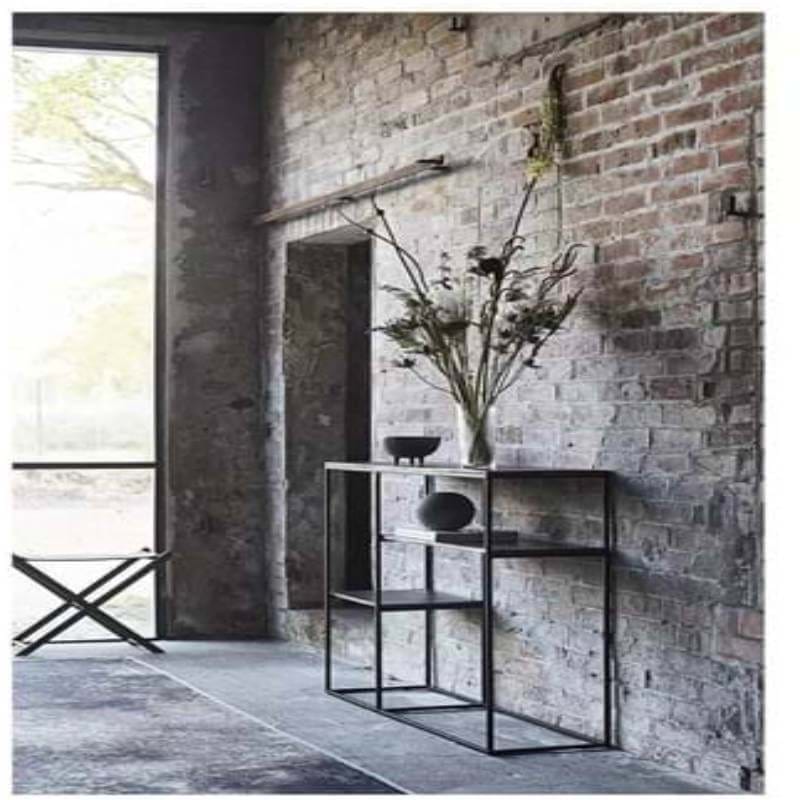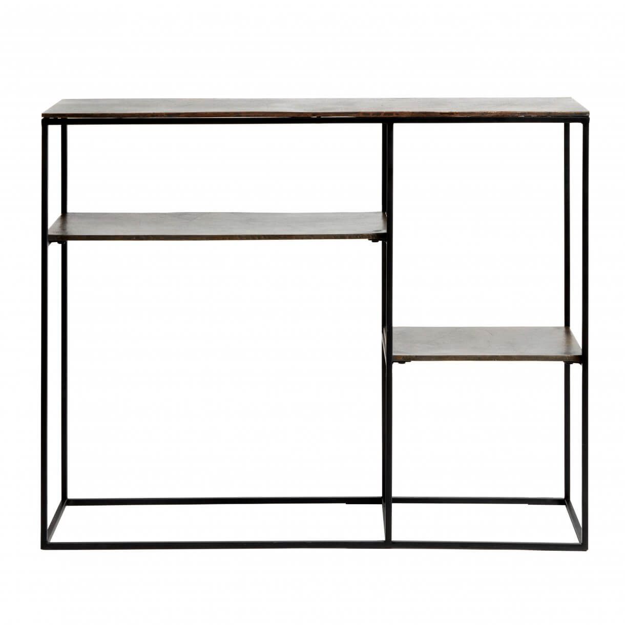 Hitch konsolbordet fra det danske Muubs er et flot og unikt møbel, som er designet af jern og flot, antik messing. Bordet måler 30 cm i bredden, 90 cm i højden og 110 cm i længden, hvilket giver masser af plads og gode muligheder for opbevaring af bøger og dekorationsgenstande. Stil bordet i kontoret, stuen eller soveværelset for at give et flot, rustikt udtryk.