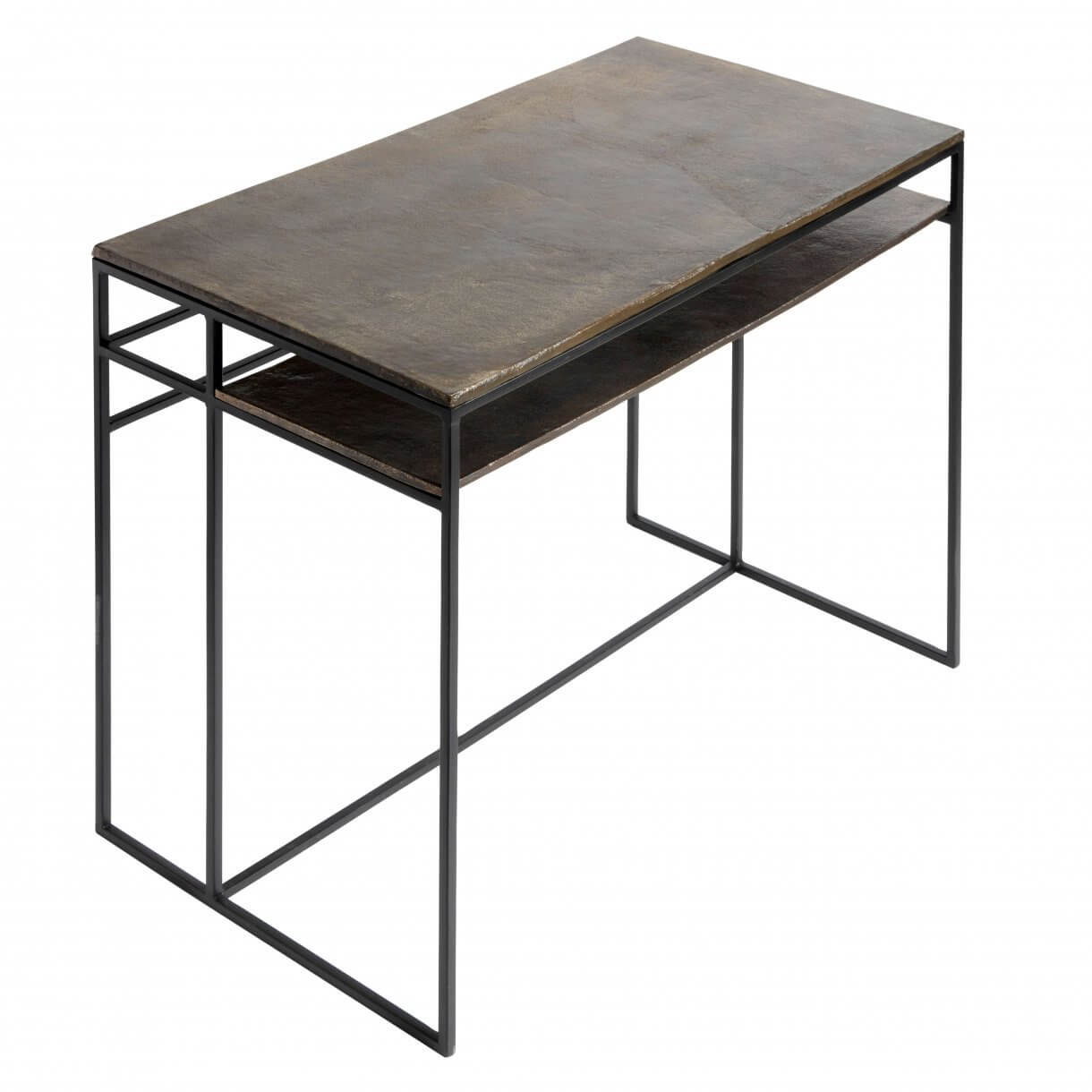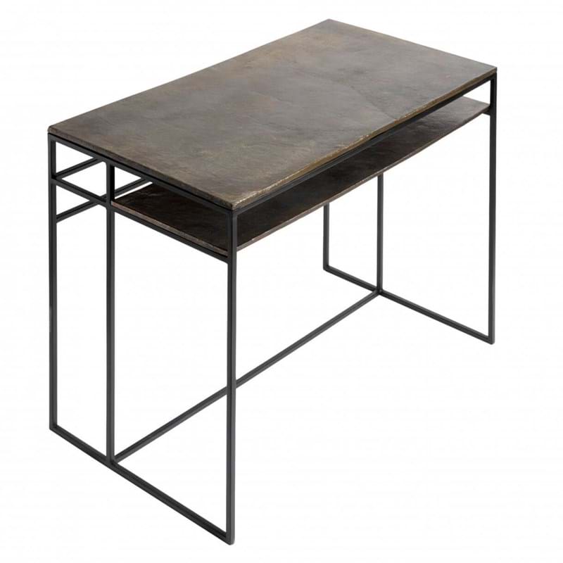Det flotte Hitch skrivebord fra Muubs er udført i et råt, enkelt og tidløst design, som med sikkerhed vil passe ind i både soveværelset og kontoret. Skrivebordet er fremstillet af jern og har en flot bordplade med en unik overflade af antik messing, som er støbt i sand. Under skrivebordet er en hylde med plads til opbevaring af bøger og andet boligtilbehør.